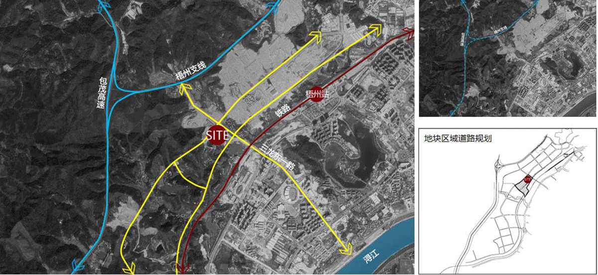 项目位于广西省梧州市长洲区南部,区域规划通过公路水运等多种运输方式联运,其中以公路为主。公路运输主要通过包茂高速,梧州支线高速公路构建对外货运通道;水运依托浔江实现水陆联运。
