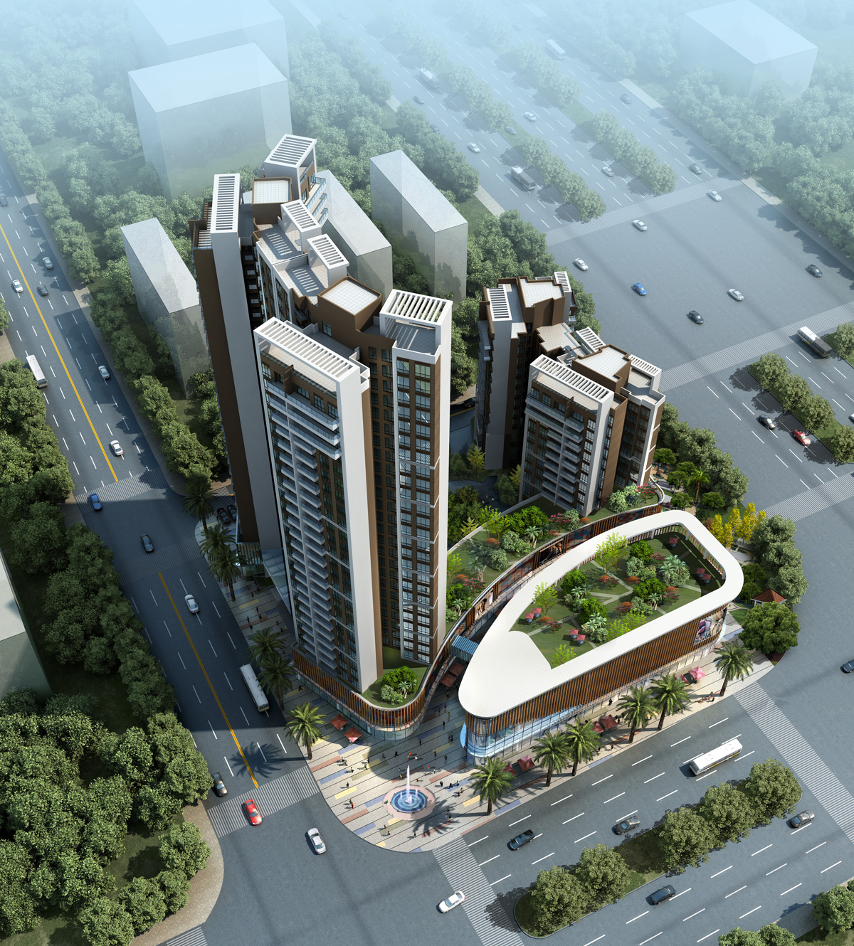 商住建筑面积:34476㎡,景观建筑面积:6566㎡