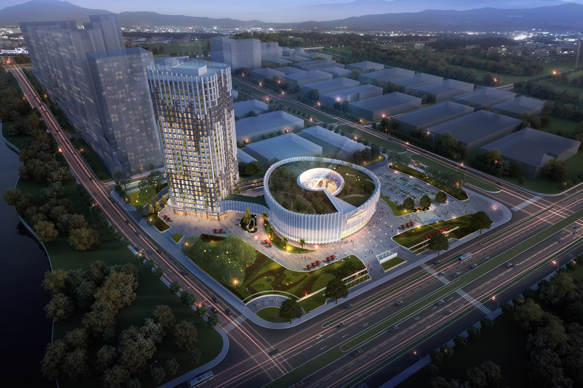 本项目总用地面积28900.21平方米,总建筑面积63123平方米, 其中:①商业建筑面积50758平方米,A座国际名车展示中心及B座综合商业楼为整栋单体,A座国际名车展示中心建筑整体2层,总高度23.8米,展厅部分层高8.0米;B座综合商业楼建筑整体26层,总高度99.6米,首层层高5.4米,2-26层层高3.6米。建筑最大跨度12.8米;②物业管理用房建筑面积283平方米;③地下建筑面积12082平方米,地下一层。该项目工程费用为22701.91万元