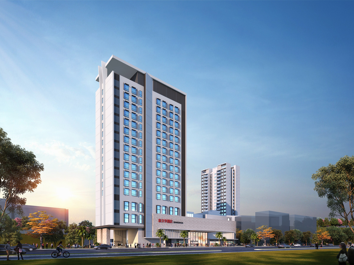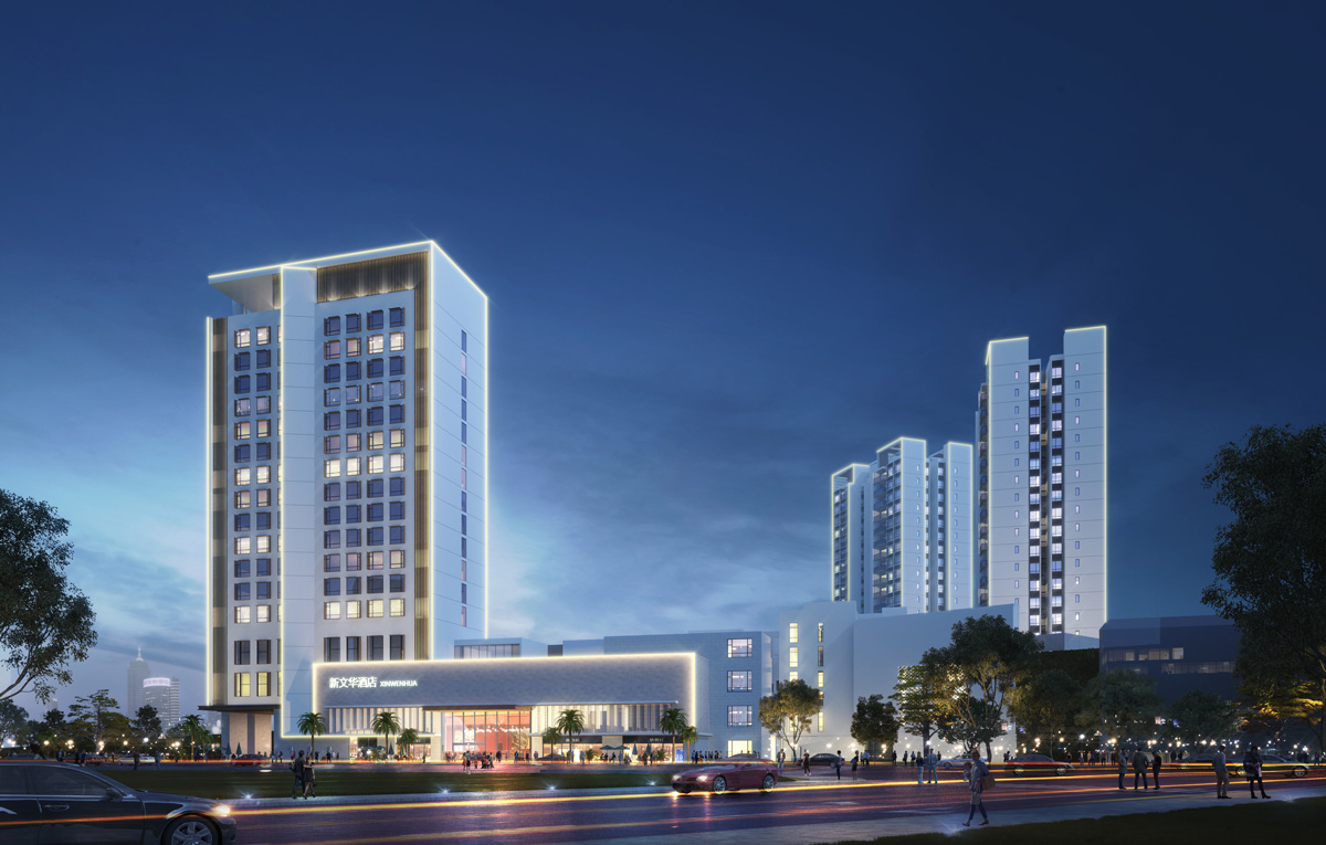 新文华酒店项目坐落于广东省鹤山沙坪街道人民东路南侧、鹤山党校西侧地段,依山而建,地处城市核心地带,是一家集住宿、餐饮、会务于一体的多功能高级酒店。