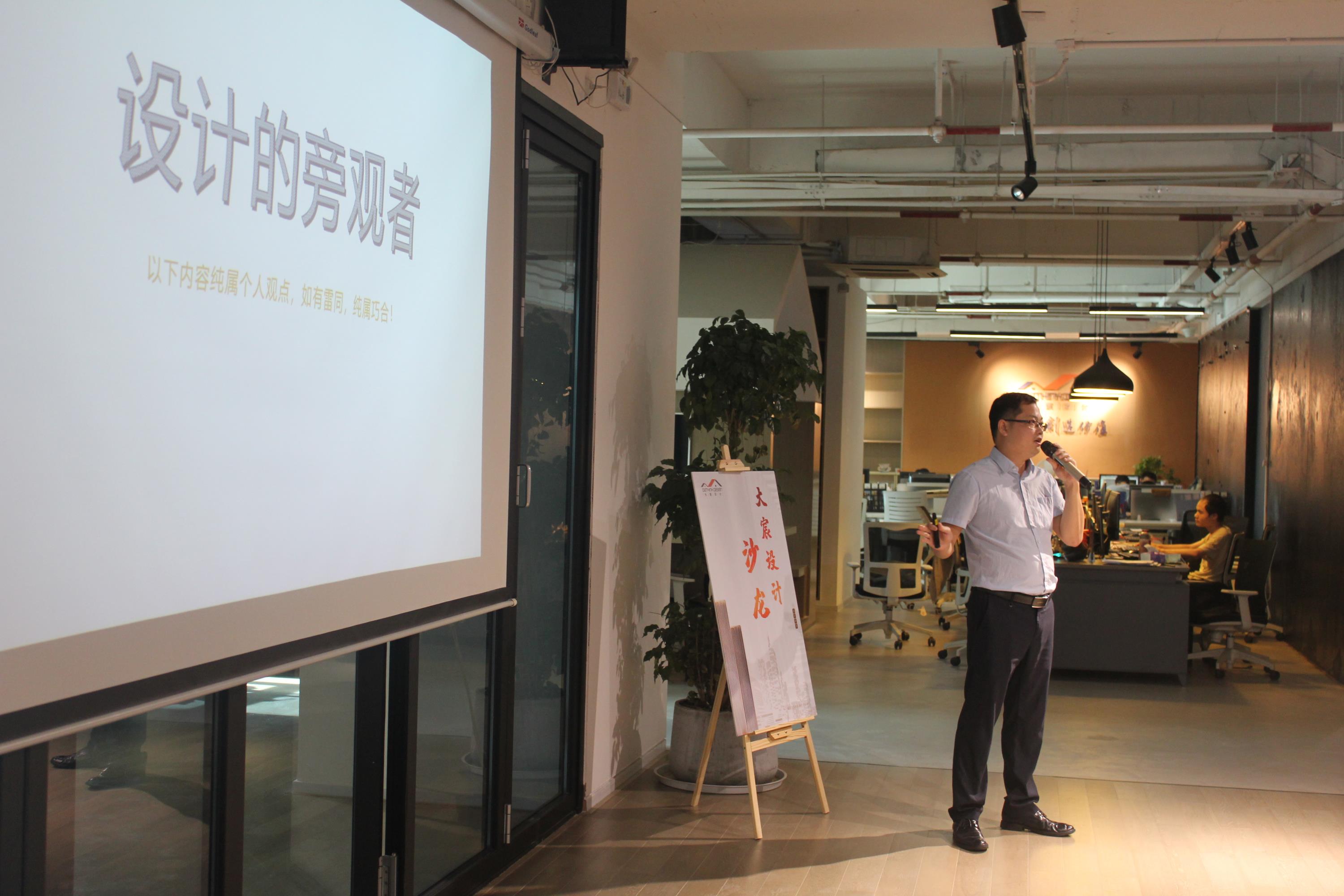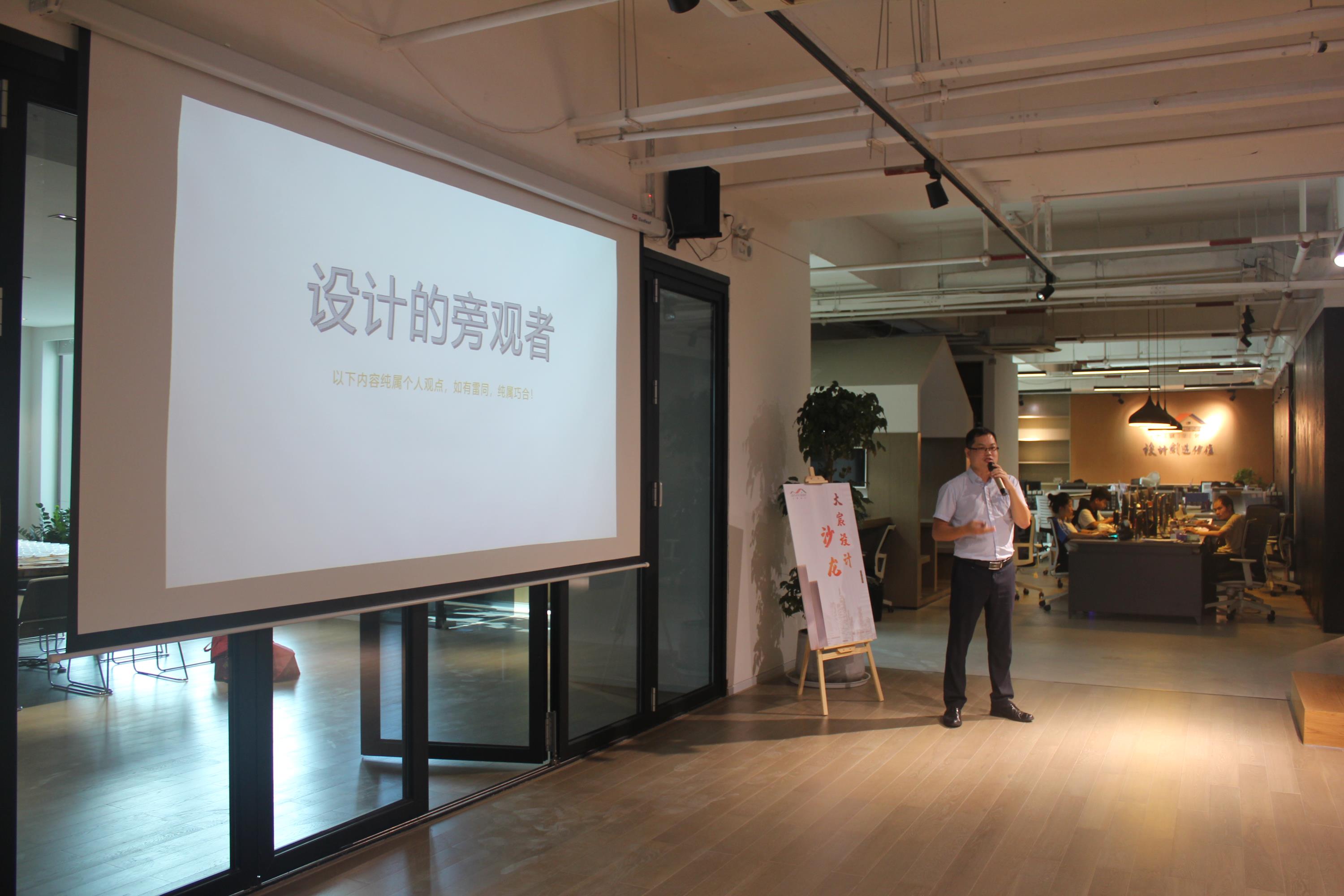 8月4日,大宸设计主题沙龙如期举行。广州市土木建筑设计顾问有限公司副总经理谭斌先生作为分享嘉宾,以“设计的旁观者”为题,围绕“设计的含义及引申”“如何做设计行业的商务工作”“如何让设计产品增值”等内容,以旁观者的角度谈论对设计行业的理解与思考。
