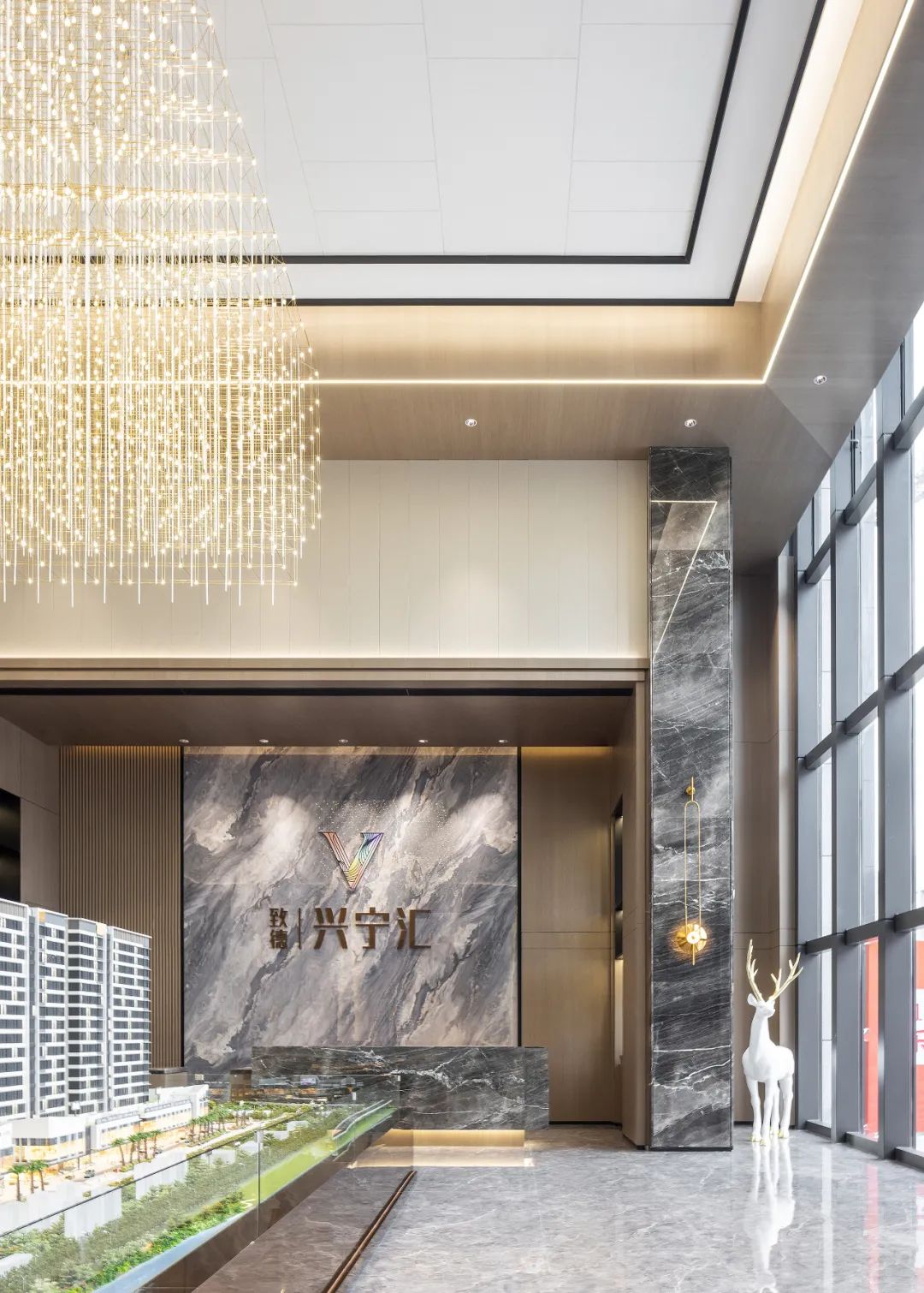 项目位于中山市兴宁路,定位现代前沿风格,来保证项目在很长一段时间内不会落后。通过现代都市化的设计来带动周边的发展。营造一个在设计手法上现代沉稳+品质高级感的空间,同时又兼具文化氛围和灵魂的空间。