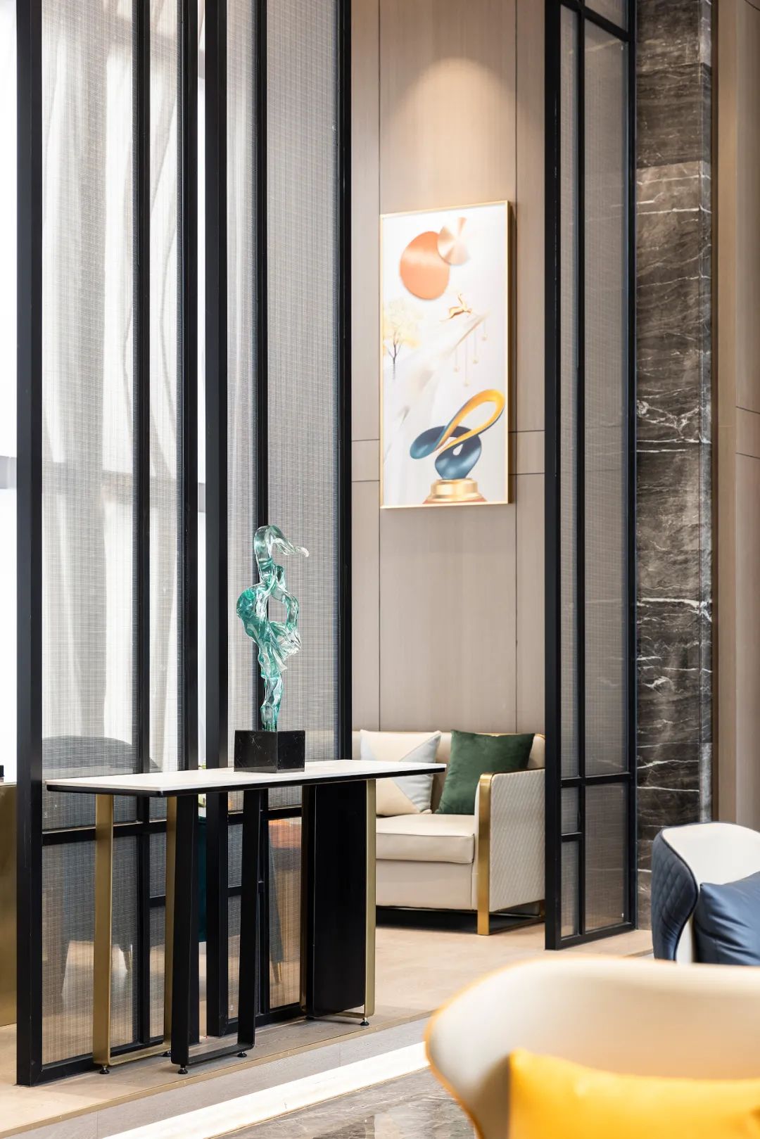 初入售楼部,空间的美学与艺术的张力碰撞出融洽的极致空间,投射着空间隐喻的高级感。阅读、商业、社交,多元的情境在此融合,设计师以空间导演的身份编排出丰富的生活场景,使艺术、人文、商业功能得以共同呈现。