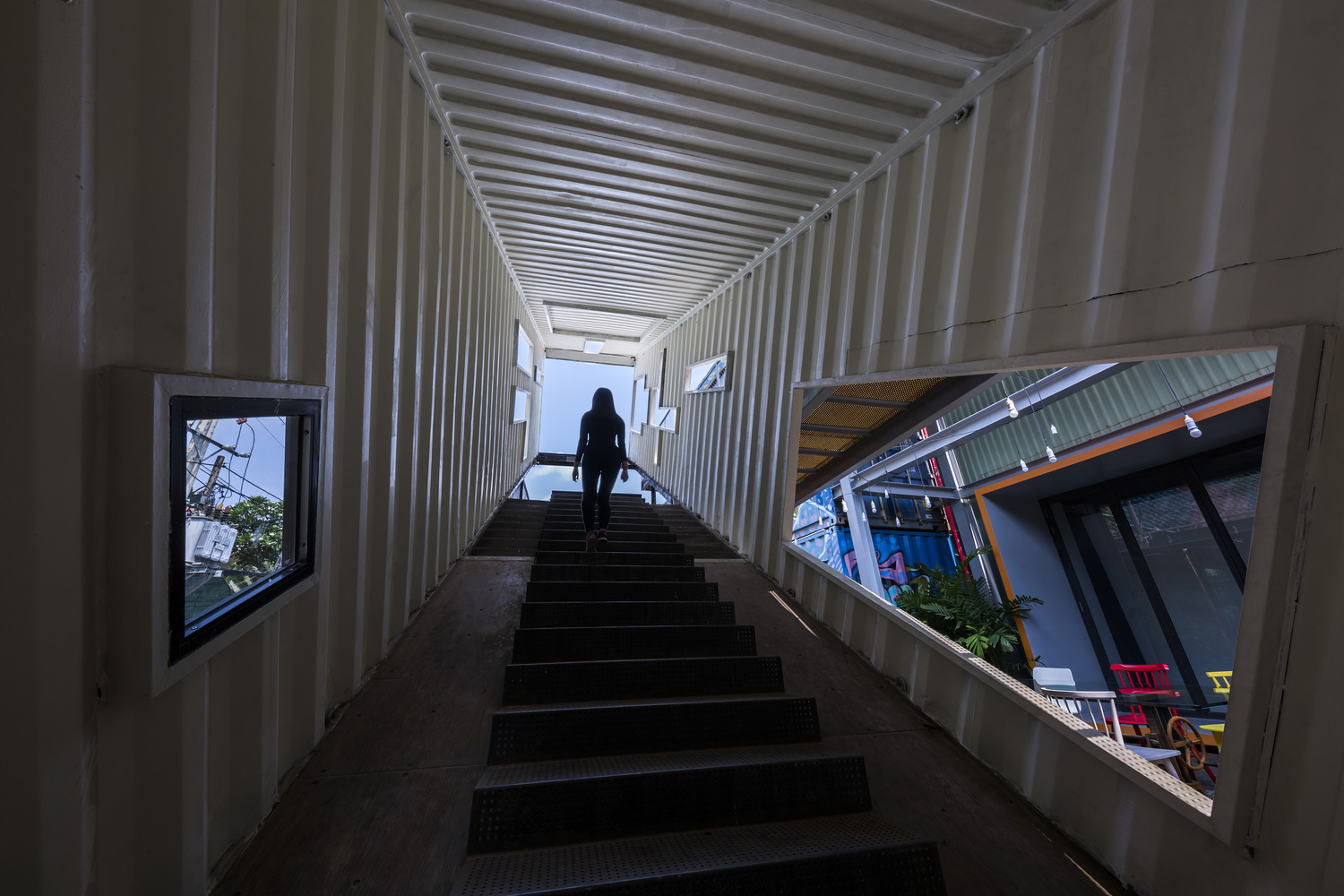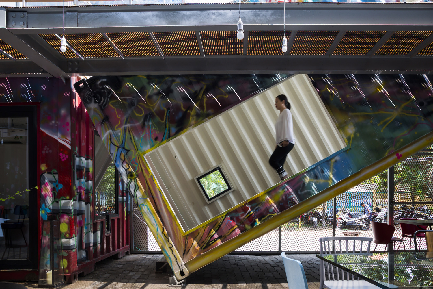 这个综合体的临街面通过集装箱表皮上当地艺术家的艺术作品强化了协作共赢的主题,其结果是为胡志明市当代艺术场馆提供了一种非正式的、有弹性的联系,旨在适应商业中心发展成熟和艺术社区成长所带来的不可避免的变化。
