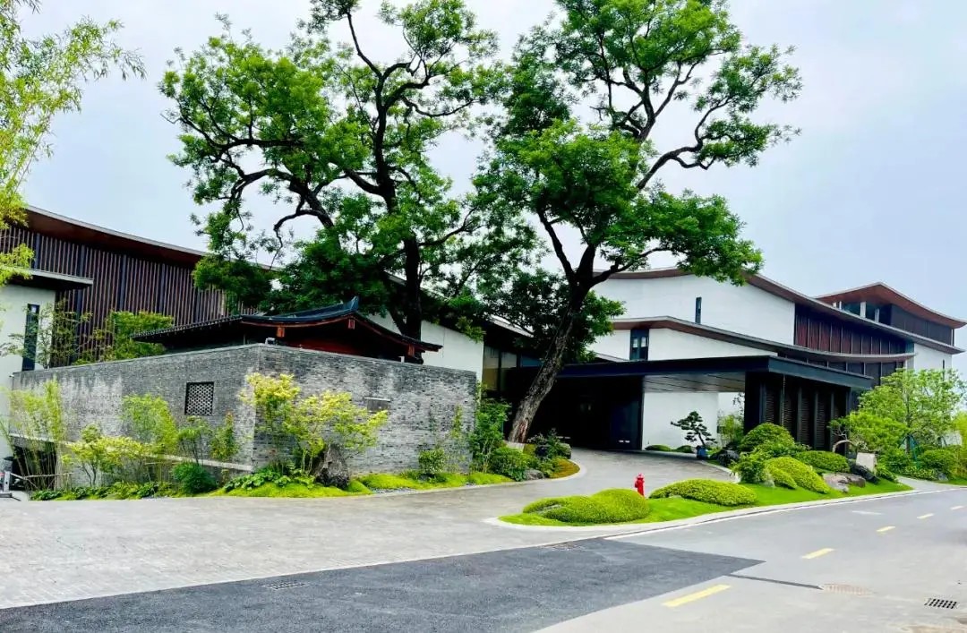 设计取意“湘南水乡”风骨,将传统民居的雕花窗棂、水磨青砖等元素解构重塑,既存古韵又赋新形;格栅式漏窗巧借绿影婆娑,框住四时风光。